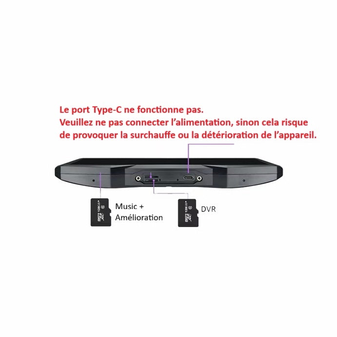 • Alimentation : 12 V (≥2 A) – ne pas alimenter par le port Type-C (risque de redémarrage)
